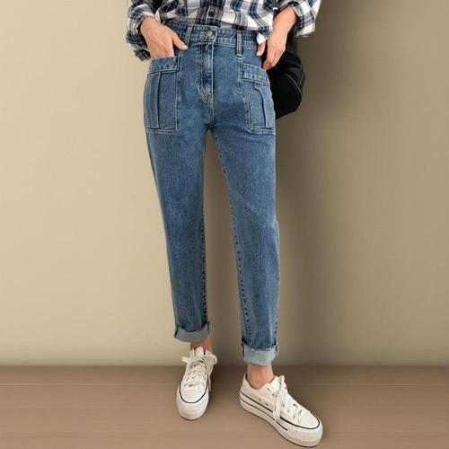 [신상오픈런]여성 캐주얼 스판 배기핏 빅포켓 청바지
