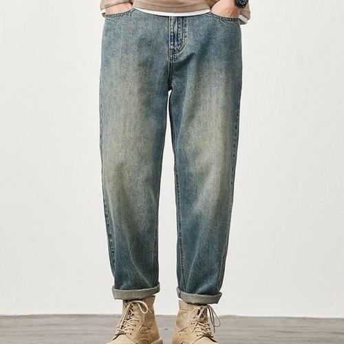 배기핏 일자 아템 배기 청바지 워싱 구제 커브 하이웨스트 편한 진 팬츠 남성용 캐주얼 빈티지 스포M1