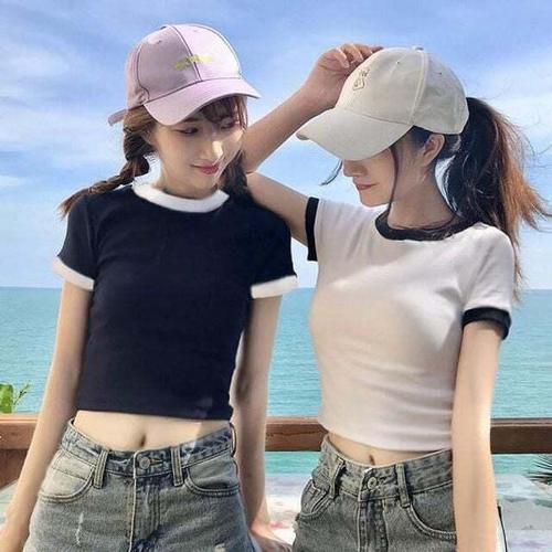 [셀럽하우스]배꼽티 FQQC8371 반팔 크롭탑 코튼 배색 크롭티 2컬러 댄스복