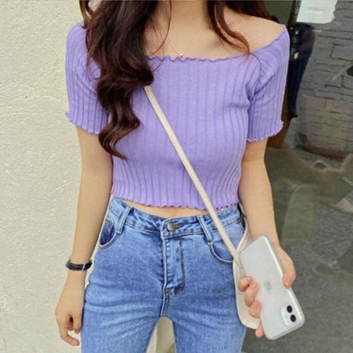 F006794 반팔티셔츠 배꼽티 스판 크롭 슬림핏 크롭티