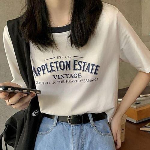 여성상의 약기모 배색반팔티 티셔츠 반팔티 간절