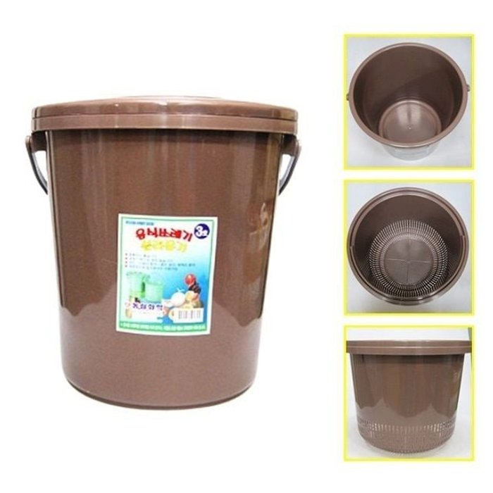 엄지척 위생적인 쓰레기통 음식물 밀폐형 배수채반 분리형 3L