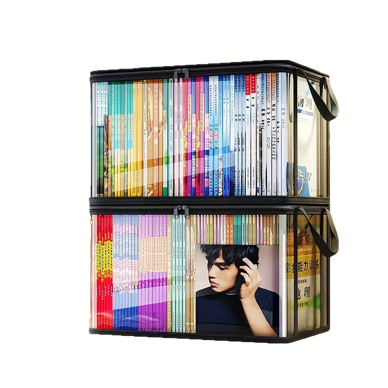 TEMU 투명 플라스틱 책 보관함 2개 세트, 대용량 책 및 의류 정리 보관함 - 공간절약형 사무실 및 가정용, 접이식 책장 가방, 투명 디자인으로 쉽게 확인 가능