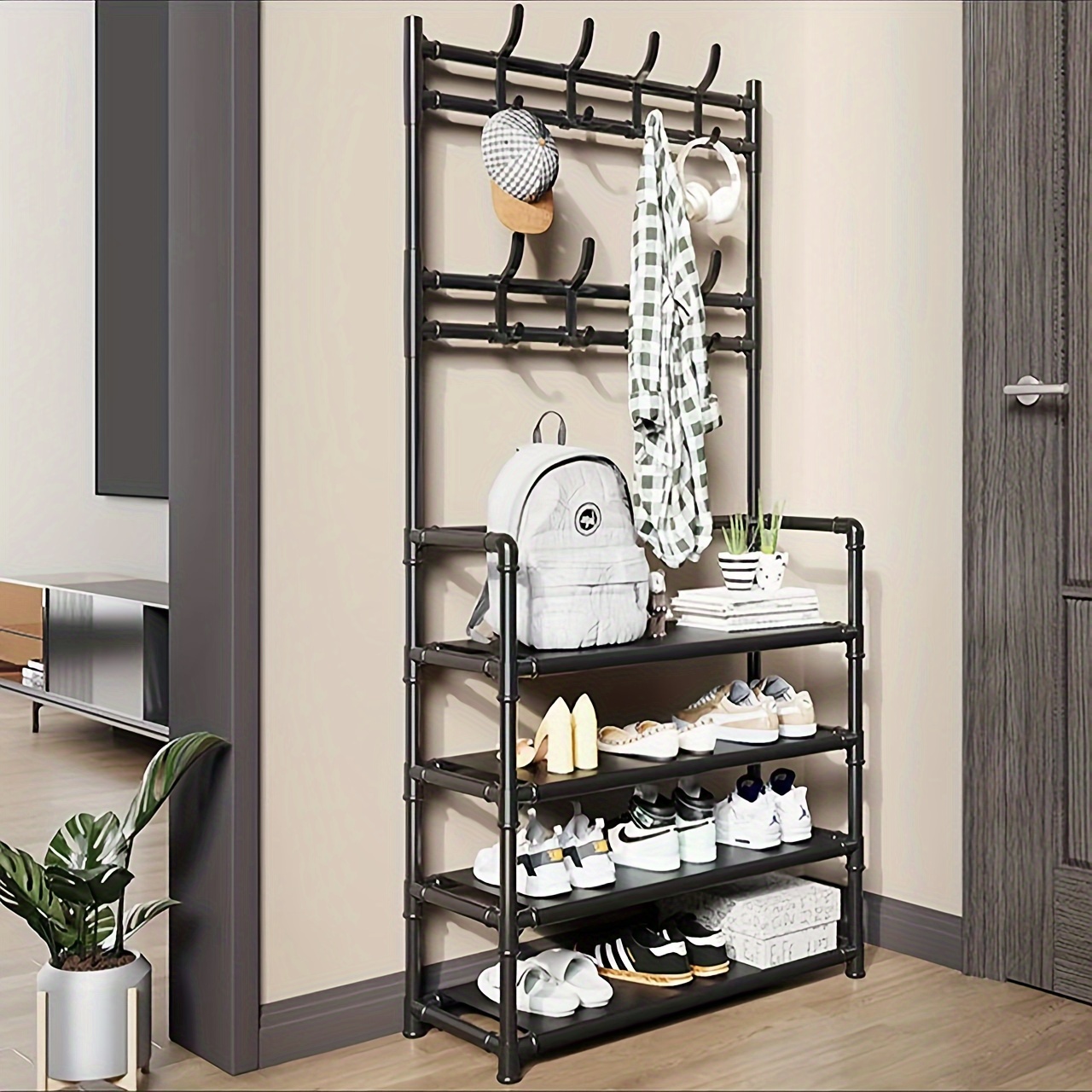 TEMU 2 in 1 복도 트리 수납 랙 코트 및 모자 랙, 옷걸이 지지대가 있는 신발 정리대 - 현관용 공간 절약형 신발 수납 가방 (블랙, 4단)|행거