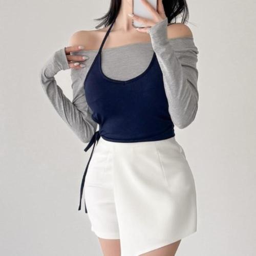 [마코] (여성)배색 밴딩 미니 스커트_MMW2CU61