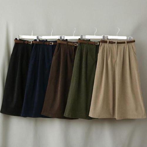 (~XXL까지) 타디안 코듀로이 뒷 밴딩 벨트 스커트 가을 데일리 롱스커트 캐쥬얼 출근룩 베이직 빅사이즈