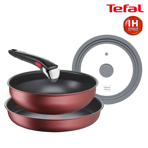 [테팔] IH 매직핸즈 그레이스 레드 단품 프라이팬 28cm+볶음팬 26cm+안심 손잡이+실리콘뚜껑