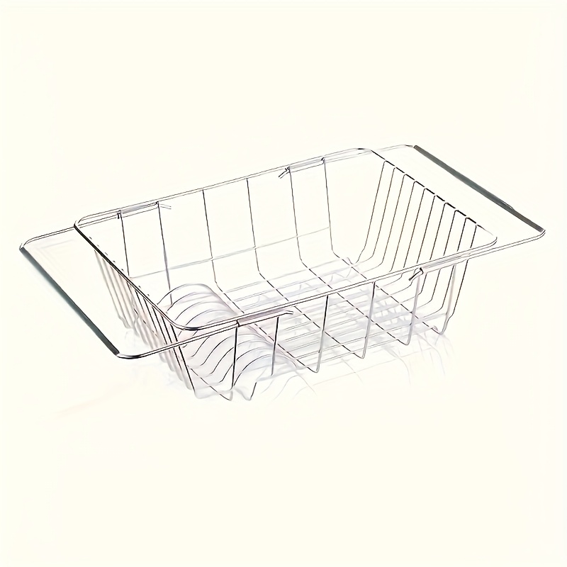 TEMU 헤비듀티 스테인리스 스틸 조절 가능한 싱크 필터 & 드레인 랙, 텔레스코픽 암레스트, 식기 건조대, 접시/그릇 홀더 - 공간 절약형 다기능 주방 수납 랙, 식기세척기 없이 사용 가능한 배수 시스템|사각싱크볼