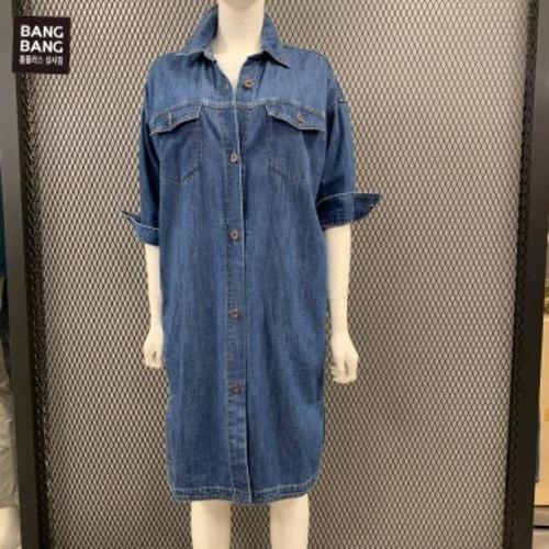 [뱅뱅]HC04 봄 여성 7부소매 롱 데님 남방 원피스 NSLD21