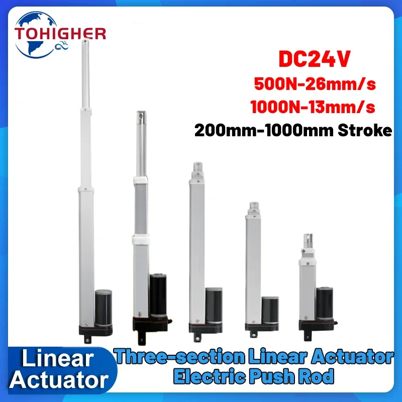 푸시로드 리프트 고추력 3섹션 선형 액추에이터 산업용 정밀 왕복 모션용 24V DC 텔레스코픽 푸시로드