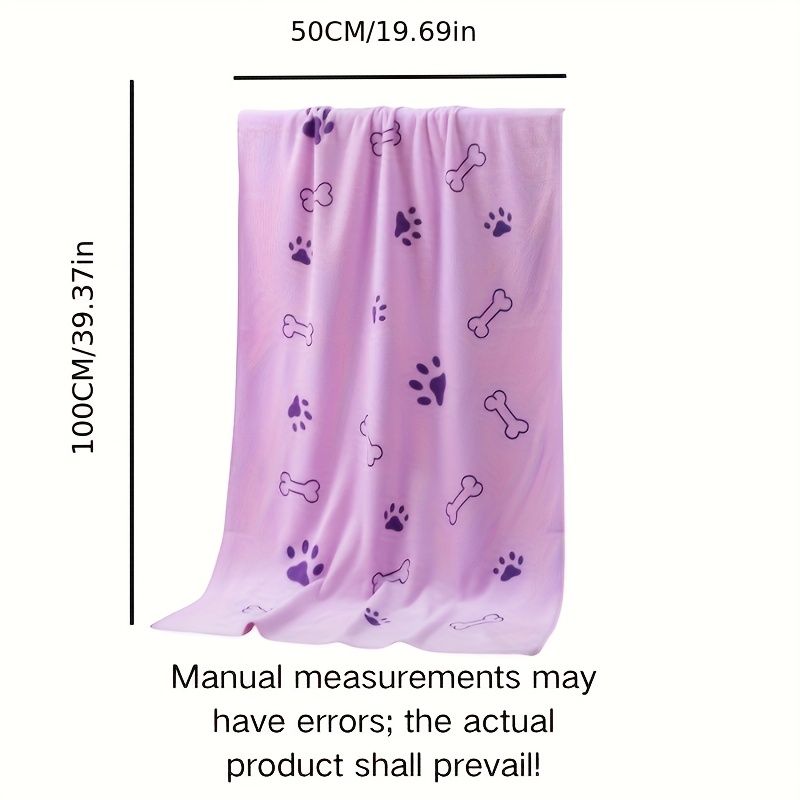 TEMU 소프트하고 흡수력이 뛰어난 애완동물용 타월 1개, 크기는 19.68인치 x 39.37인치이며 중간 크기의 강아지에게 적합합니다. 빠른 건조를 위해 설계되었으며 발자국 패턴이 특징입니다.
