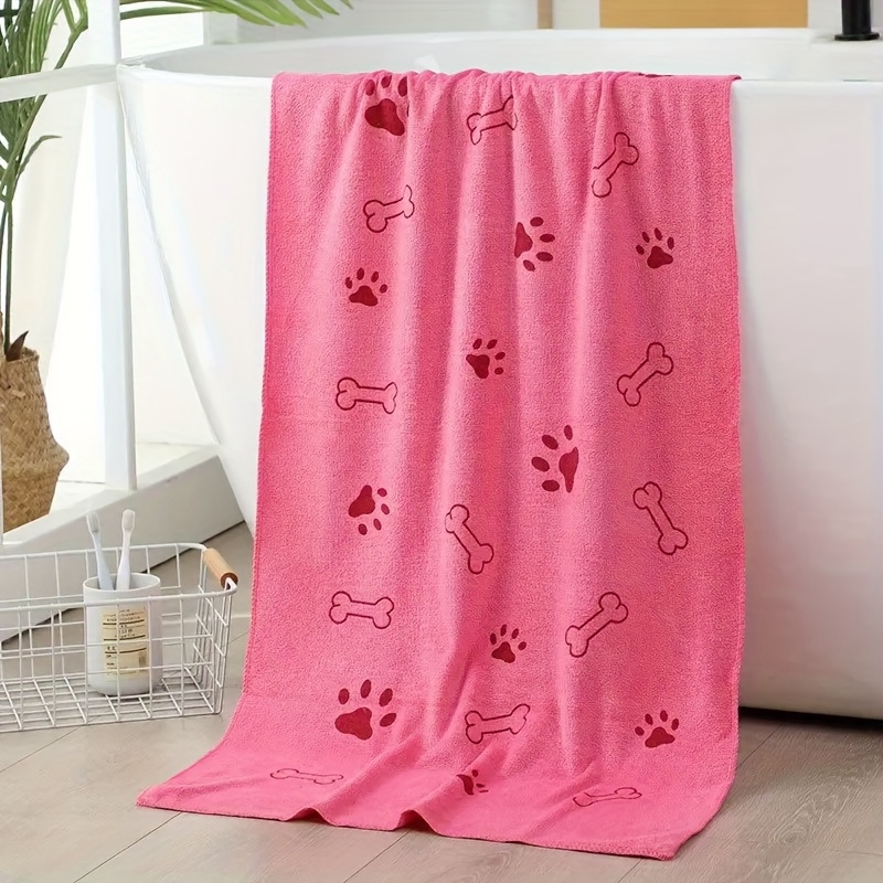 TEMU 강력 흡수성 강아지 극세사 타월 - 빠른 건조, 부드럽고 두꺼운 목욕 천, 엠보리디드 발자국 프린트