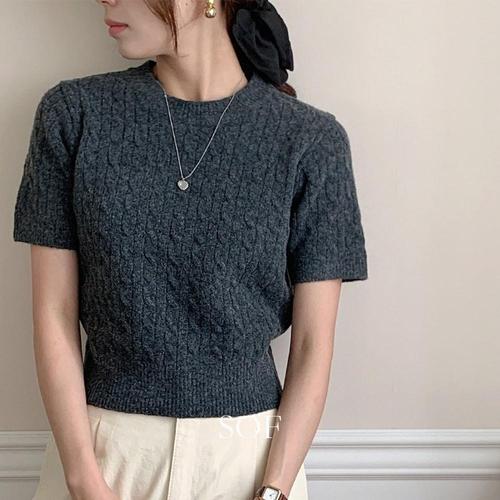 [기타브랜드]파스텔 케이블 반팔 니트 5color