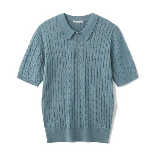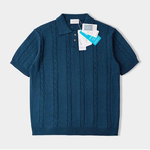[리빌모아]남자 로웬 케이블 카라 반팔 니트티 AT-KNH-Q004-블루