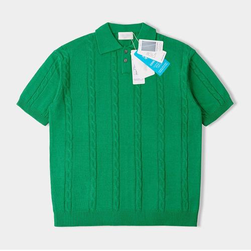 [리빌모아]남자 로웬 케이블 카라 반팔 니트티 AT-KNH-Q004-그린