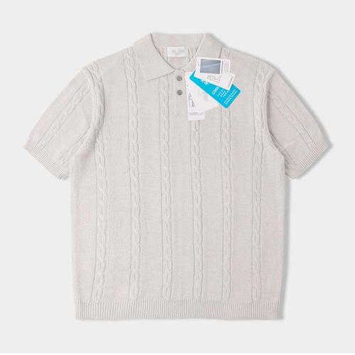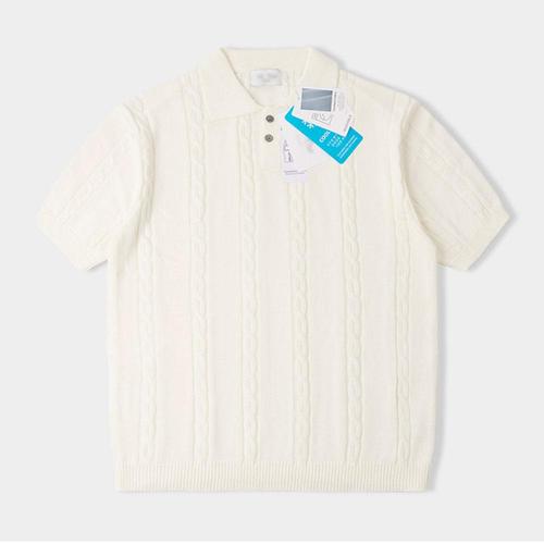 [리빌모아]남자 로웬 케이블 카라 반팔 니트티 AT-KNH-Q004-아이보리