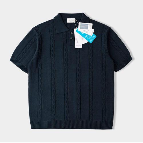남자 여름 케이블 오픈카라 반팔 니트티 SG-KNH-Q013-네이비