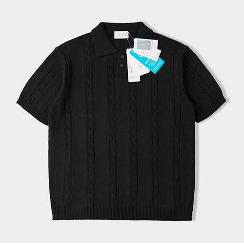 [리빌모아]남자 로웬 케이블 카라 반팔 니트티 AT-KNH-Q004-블랙