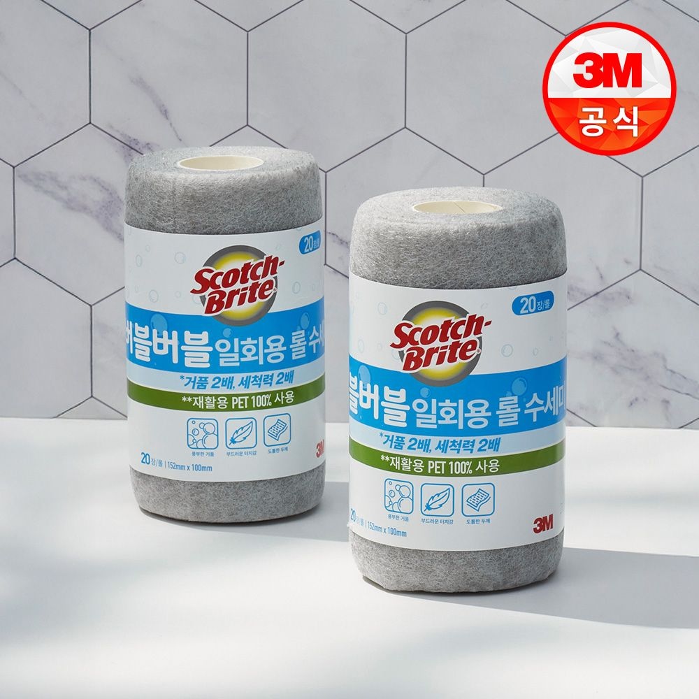 버블버블 일회용 롤수세미 20매 2개, (총 40매)