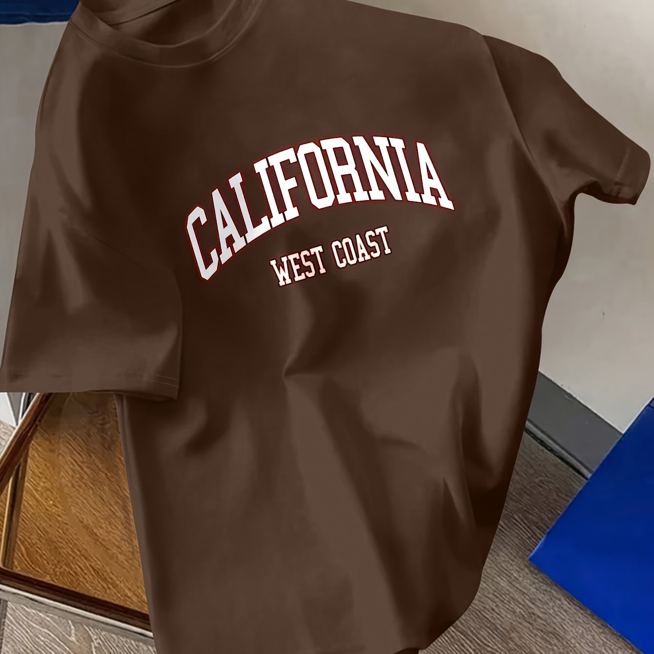 TEMU 남성용 캘리포니아 웨스트 반팔 셔츠 - 커서스 'Calif' & 'West' 레터링, 라운드넥 캐주얼 여름 비치웨어, 캐주얼 복장용 핏 블라우스, 세탁기 사용 가능