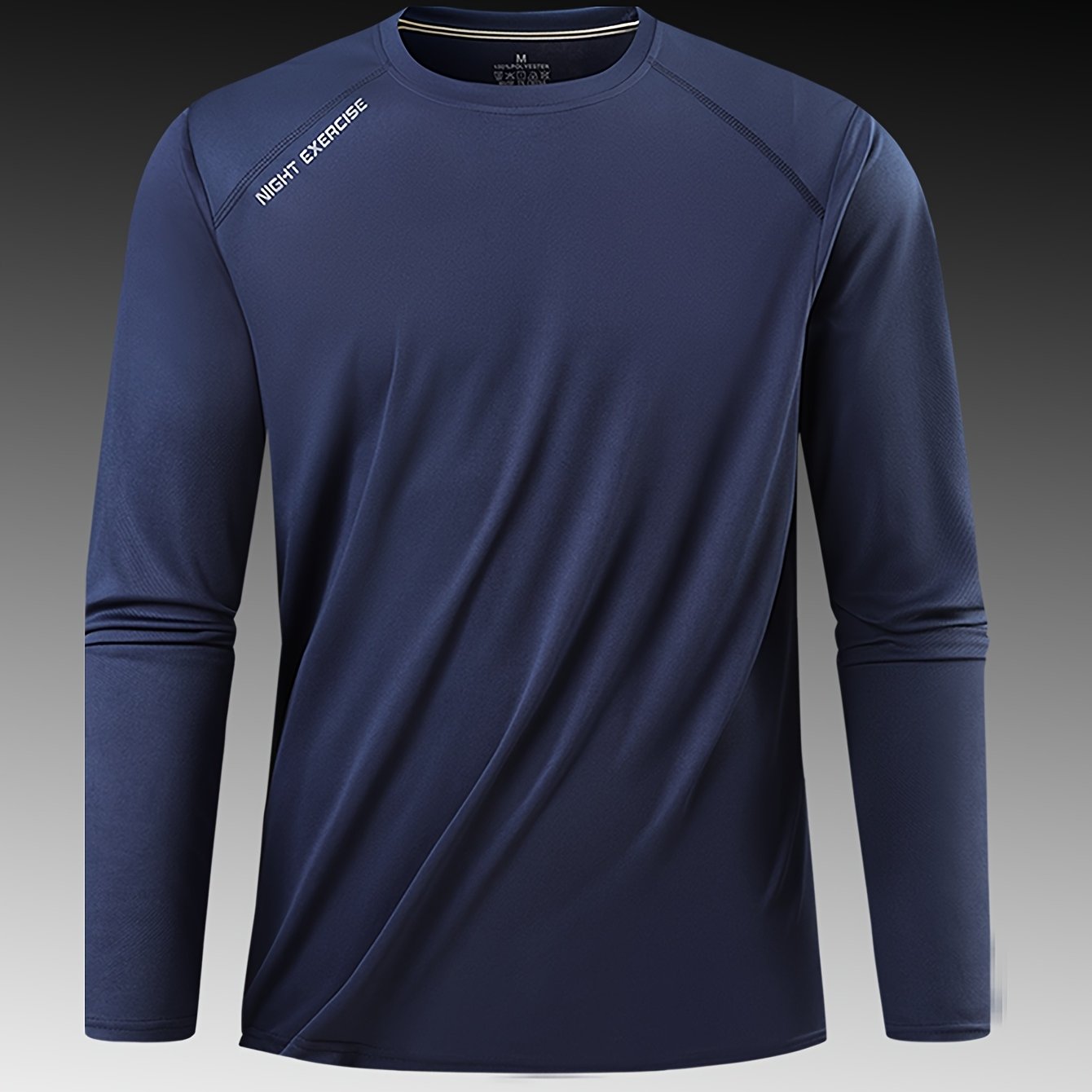 TEMU 1PC 남성용 긴팔 티셔츠, 솔리드 컬러 퀵드라이 라운드넥 스포츠 긴팔, 편안하고 캐주얼, 집에서와 피트니스용 일상복, 휴일 선물