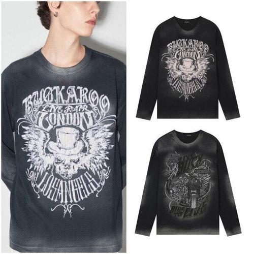 [버커루]남성 루즈핏 레터링 다잉 긴팔 티셔츠_US
