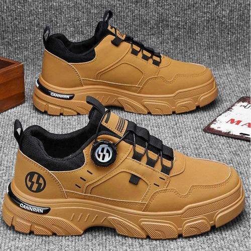 남성용 회전 버튼 작업 신발 안티 펑크 작업 운동화 방수 작업 안전 신발 미끄럼 방지 강철 발가락 전술 부츠