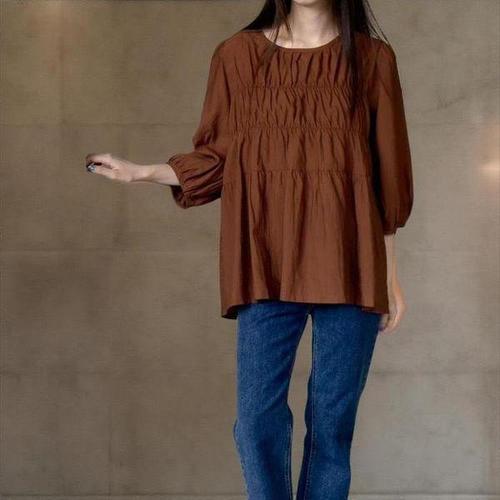 [다잇템_패션]여자 들러리룩 FW 핀턱 벌룬 라운드 블라우스