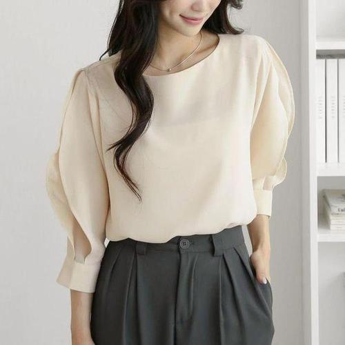 [신상오픈런]여성 사무실 패션 루즈핏 쉬폰 벌룬 소매 긴팔 블라우스