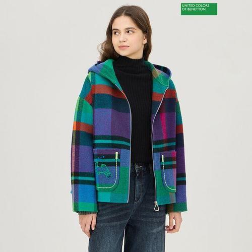 [베네통] 체크 후드 집업 하프 코트_BACT65461VO