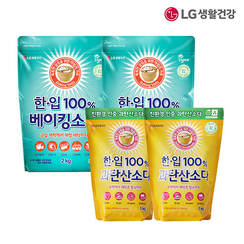 [LG생활건강] 한.입 100% 과탄산소다 1kg x 2개 + 한.입 100% 베이킹소다 2kg x 2개
