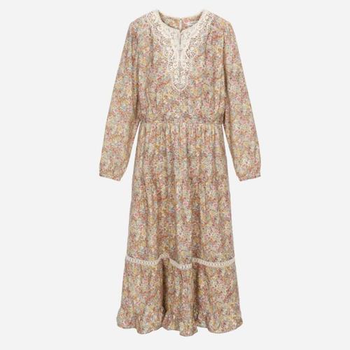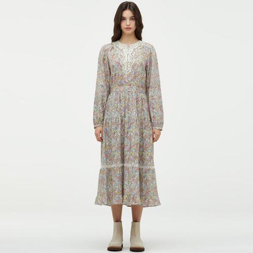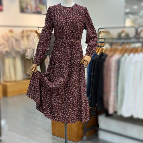 [써스데이아일랜드]레이스배색 기모 플라워 롱 원피스 t248mop246