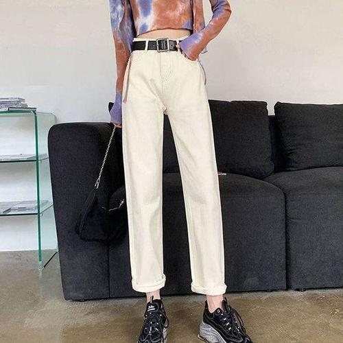 [에이치플러스몰]베이지 데님팬츠 베이지진 봄청바지 편한 여성 크림진