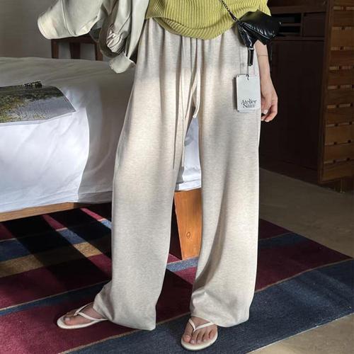 여성 허리밴딩 어반 캐주얼 통 편안한 와이드 팬츠 PIC-WPT-20339-연베이지