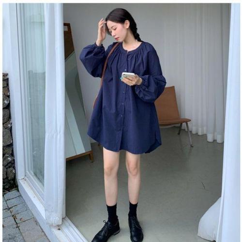 [셀럽하우스]셔링 CXRH5616 롱셔츠 네이비 루즈핏 베이지