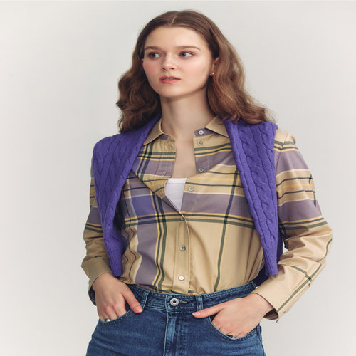 헤지스 여성 [스테디셀러]베이지 체크 긴소매 셔츠 (WSSH4DC81I2)