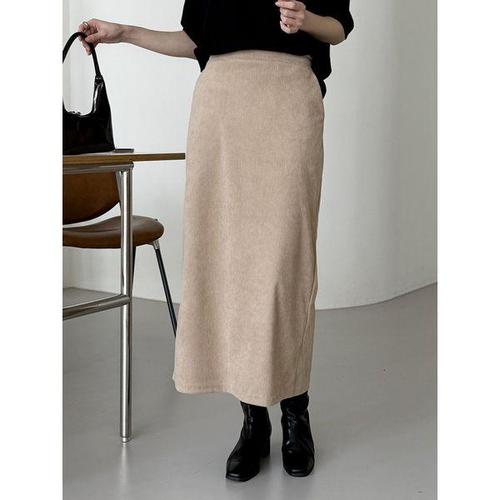 부기샵 2단기장 융기모 안감 골마 코듀로이 골덴 뒷트임 밴딩 롱스커트