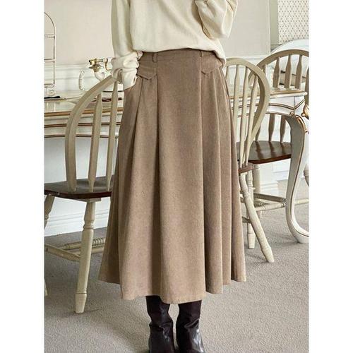 [샵앤]간절기 여성 투턱 반밴딩 코듀로이 롱 스커트 SIU-WSK-3724-베이지