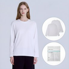 베이직하우스 여성용 통기성 40수 릴렉스핏 라운드 긴팔티셔츠 2종 세트