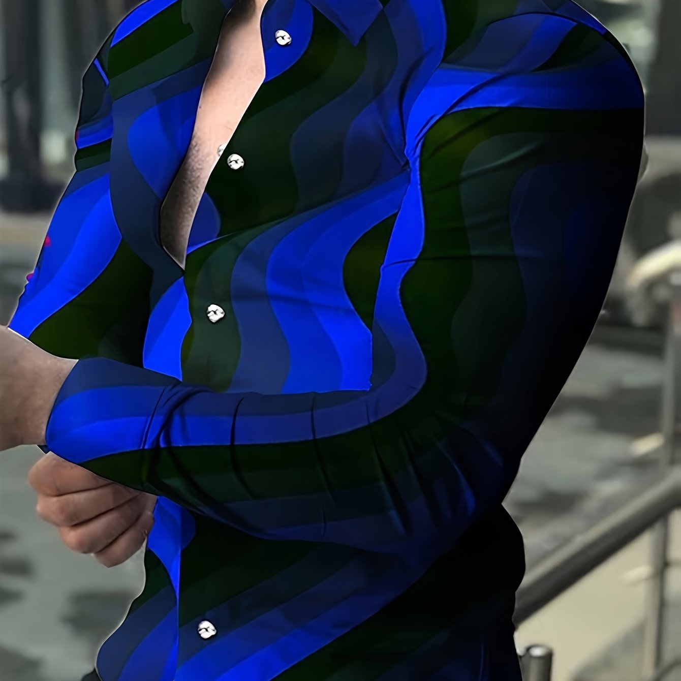 TEMU 남성용 3D 프린팅 패턴 긴팔 셔츠, 가우ィ 패턴 디자인, 캐주얼용, 스포티한 스타일