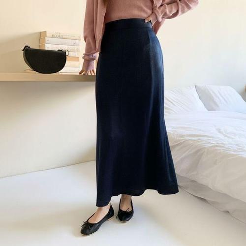 [옷자락] 여성 폴리 레이온 부드러운 벨벳 느낌 슬림 롱스커트