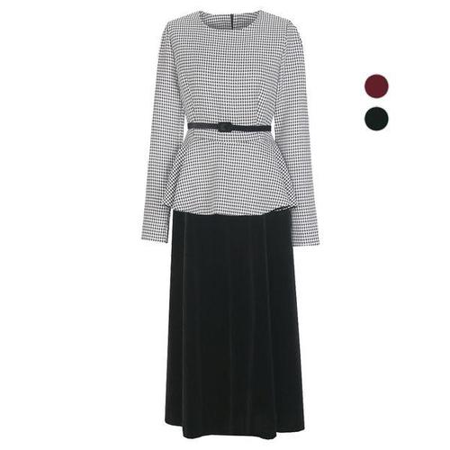 [비비드시크릿가너]여성 하운드투스 벨벳 벨티드 원피스
