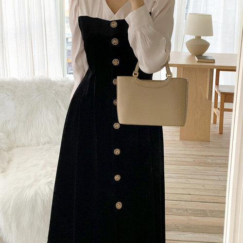더제이수 / 배색 벨벳 원피스