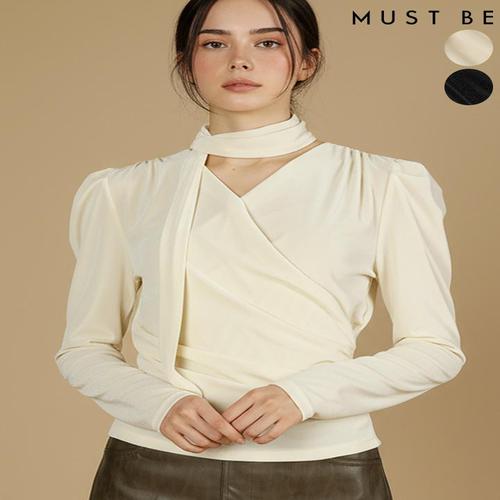 [머스트비]여성 랩 타이 세트 벨벳 블라우스