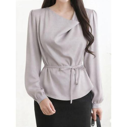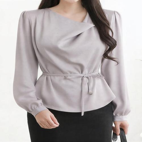 [다잇템]여성 베이직 블라우스 V넥 롱슬리브 벨트포함