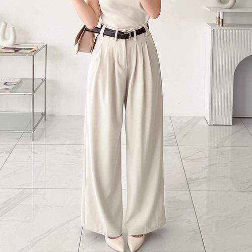 디바이브 여성 스트레이트 하이웨이스트 벨트 세트 와이드 모던 클래식 데일리 슬랙스 팬츠