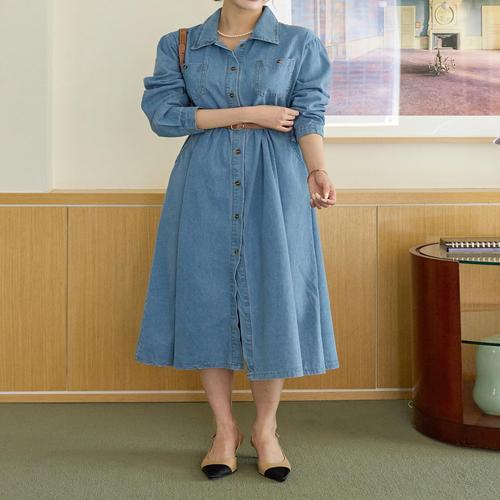 [모리스커밍홈][벨트SET]포켓 카라 데님 롱 원피스_M2508OP084C