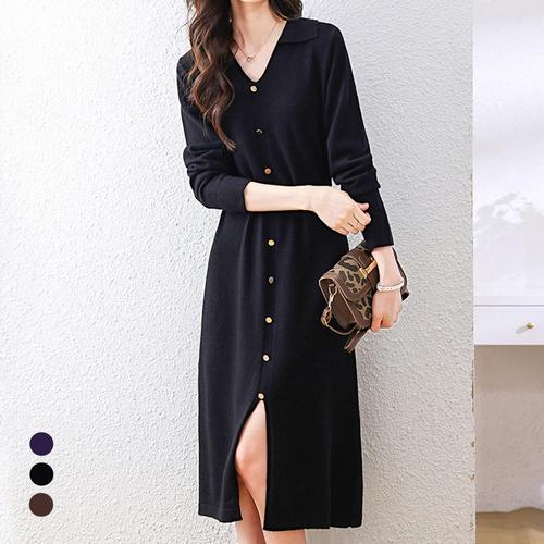 클라셰 골드슬릿니트롱원피스+벨트SET_B5W0153