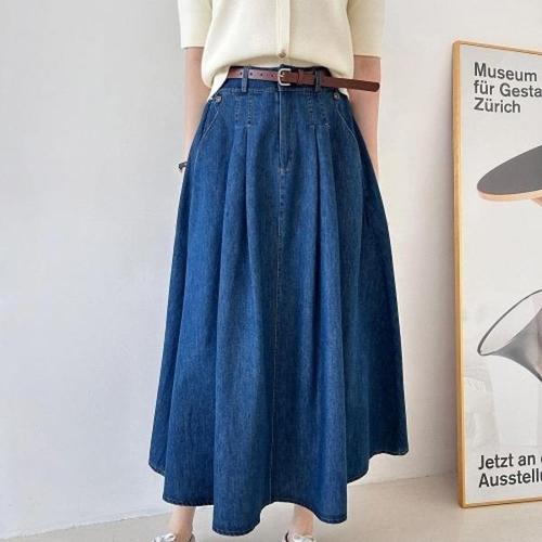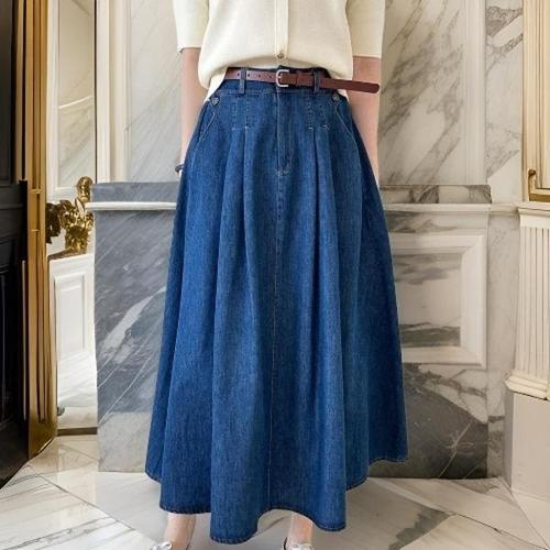 [다잇템][다잇템] 여자 후레아 진 핀턱 벨트스커트 주머니 롱스커트_20420548_588872
