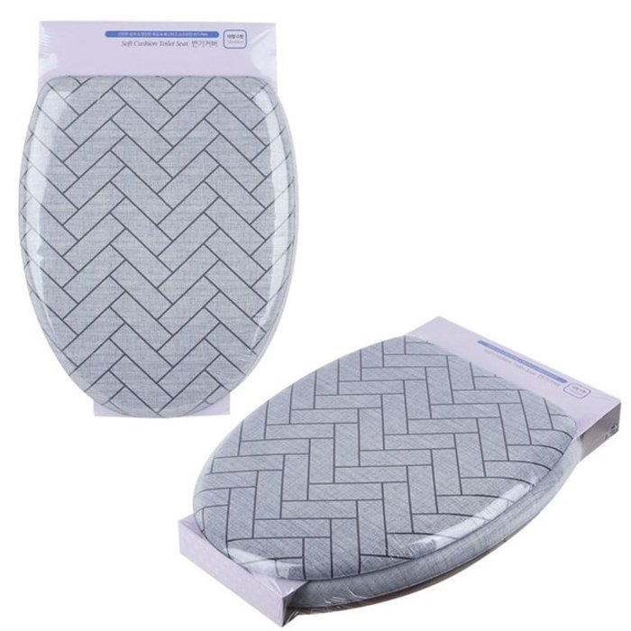 엄지척 소프트 헤링본 변기커버-그레이 O형 대형 푹신한